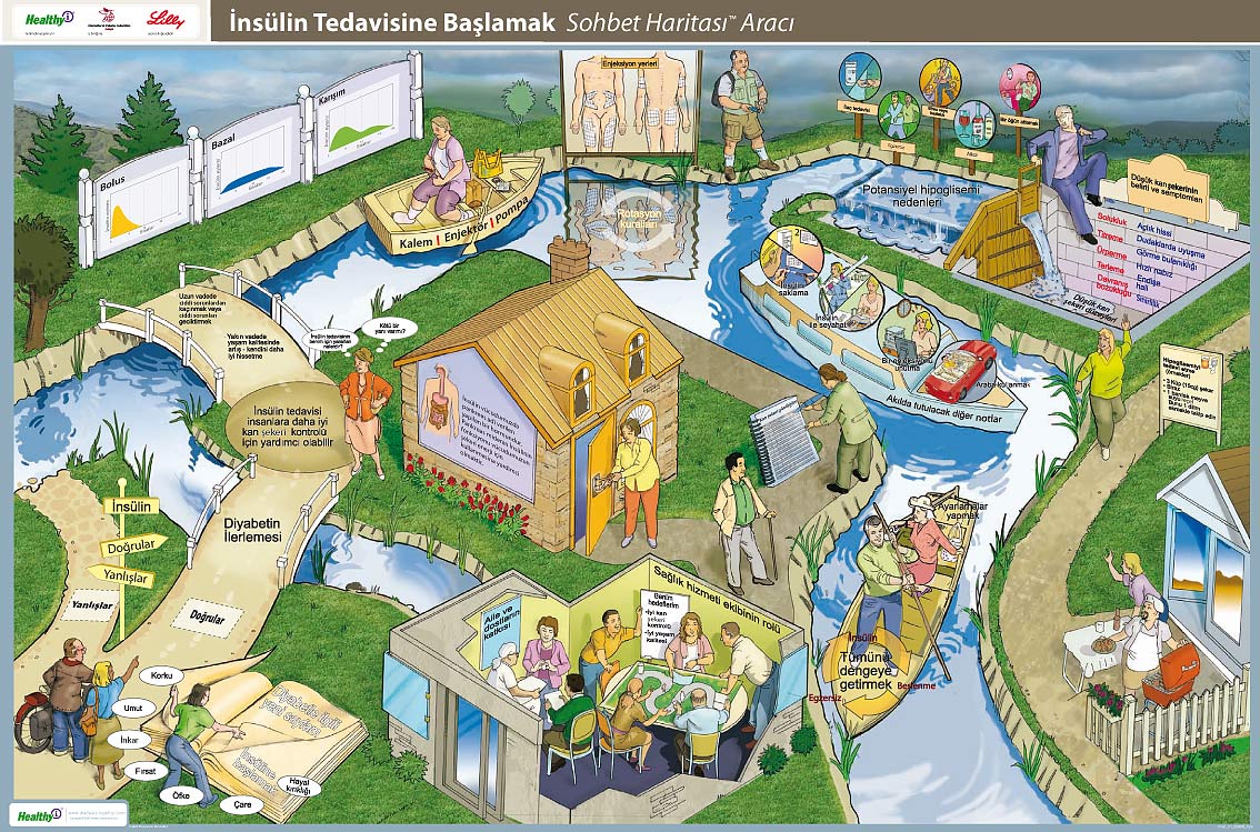 "Diabetes gemeinsam verstehen" ist nicht einfach eine Diabetesschulung auf Türkisch: "Das Schulungskonzept ist nicht nur sprachlich, sondern außerdem inhaltlich und didaktisch speziell auf türkischsprachige Menschen mit Typ-2-Diabetes ausgerichtet", so Dilek Öz, Diabetesassistentin DDG und Schulungsleiterin. Die bildhafte, interaktive Wissensvermittlung anhand von Gesprächslandkarten macht die Schulung sehr lebendig und hilft, soziale und kulturelle Barrieren zu überwinden. Die Inhalte werden nicht von der Schulungsleiterin vorgetragen, sondern durch interaktive Gespräche in der Gruppe vermittelt. Nicht zuletzt kann eine türkischstämmige Schulungsleiterin auch gut auf kulturelle Unterschiede eingehen. Geschult wird jeweils an vier Terminen in Gruppen von drei bis zehn Teilnehmern und getrennt nach Geschlecht. Ziel der Schulungen ist es, den Therapieerfolg zu verbessern, indem die Patienten einen bewussteren und eigenverantwortlichen Umgang mit der Erkrankung erlernen.