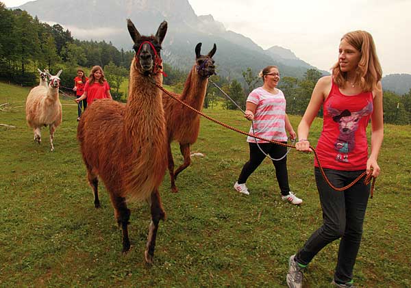 So kam es, dass Jaquelin (12), Tamara (13), Samira (14), Katja (16) und Regina (16) mit Lamas durch die Berchtesgadener Berge wanderten. Dabei erfuhren sie von Lama-Experten Klaus ganz Erstaunliches über die südamerikanischen Tiere: "Lamas sind allesamt Diabetiker, denn sie haben grundsätzlich kein Insulin." "Na, dann passen die ja zu uns", kommentiert die blonde Regina verschmitzt.