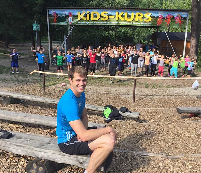 Bildunterschrift: Daniel Schnelting beim "KiDS-Kurs" für Kinder mit Diabetes.