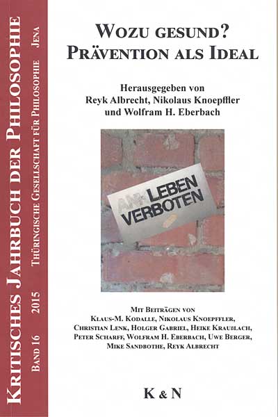 Bibliografische Angaben: Reyk Albrecht, Nikolaus Knoepffler, Wolfram H. Eberbach (Hg.): "Wozu gesund? Prävention als Ideal", Kritisches Jahrbuch der Philosophie, Band 16, Königshausen & Neumann, 2015, 139 Seiten, 19,80 Euro. ISBN 978-3-8260-5828-8