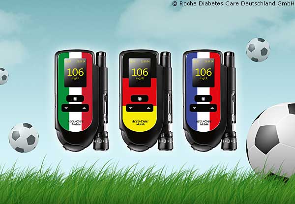 Nach dem Sommermärchen ist vor dem Sommermärchen und Vorbereitung ist bekanntlich alles - egal ob beim Diabetes Management oder beim Sport. Deshalb sollten Fußballfans bereits jetzt damit beginnen, den Grill zu schrubben, die Landesfahnen zu bügeln und den Bestand an Fanartikeln zu prüfen. Für Menschen mit Diabetes heißt es, trotz aller Aufregung, die Blutzuckerwerte nicht aus dem Blick zu verlieren. Nutzer des Accu-Chek® Mobile Blutzuckermesssystems können deshalb passend zum anstehenden Großereignis bereits jetzt ihre ganz persönliche Fan-Kollektion erweitern: Ab sofort gibt es eine limitierte Sticker-Edition mit acht Länderstickern, mit denen jeden Tag auch während der Blutzuckermessung Flagge gezeigt werden kann. Das bunte Set kann über www.accu-chek.de/laender-edition kostenfrei bestellt werden.Für welche Mannschaft das Herz schlägt, bleibt jedem selbst überlassen und manchmal kann sich das sogar mitten im Turnier ändern. Damit jeder Fan mit Diabetes nicht nur sich, sondern auch seinen täglichen Begleiter, das Blutzuckermessgerät, entsprechend 'einkleiden' kann, bietet Roche Diabetes Care zum Fußballfest in Frankreich ein Sticker-Set für Accu-Chek® Mobile an: Den Ländern Deutschland, Niederlande, Polen, Frankreich, Türkei, Spanien, Italien und Kroatien kann somit mit jeder Blutzuckermessung ein klebendes Denkmal gesetzt werden.