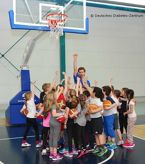 Bildunterschrift: SMS Projektkinder der Matthias-Claudius-Grundschule beim Basketball-Training im Verein ART Giants Düsseldorf