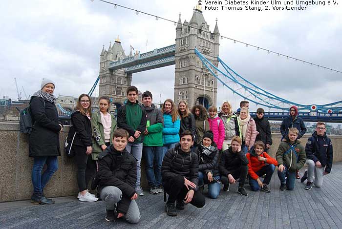 Wie viele Kohlenhydrate haben "Fish and Chips"? Wie wirkt sich der hohe Fettgehalt auf das Insulin aus? Diesen Fragen stellten sich 19 Jugendliche im Alter von 13 bis 17 Jahren mit Diabetes mellitus Typ 1, die Ende März für vier Tage nach London gereist sind, um dort mit Unterstützung von fünf Betreuer/innen den selbstständigen und selbstbewussten Umgang mit ihrer chronischen Erkrankung zu üben. Die Flugreise wurde vom Schulungszentrum für Kinder und Jugendliche mit Diabetes mellitus (Klinik für Kinder- und Jugendmedizin, Universitätsklinikum Ulm) und dem "Verein Diabetes Kinder Ulm und Umgebung e.V." organisiert. Die Aktion "Radio 7 Drachenkinder" hat die Reise mit 6.000 Euro unterstützt.Einmal ohne Eltern die Welt erkunden und dort völlig eigenverantwortlich mit der Krankheit umgehen: Für viele Jugendliche mit Typ-1-Diabetes oder anderen chronischen Krankheiten löst dieser Gedanke Ängste aus. Was, wenn der Blutzuckerspiegel nachts zu stark absinkt? Ist die gewohnte Therapie auch bei anderen Lebensmitteln und Essgewohnheiten die richtige? Doch was könnte helfen, um den jungen Typ-1-Diabetikern diese Skepsis zu nehmen? Eine Reise ins Land der "Fish and Chips"!
