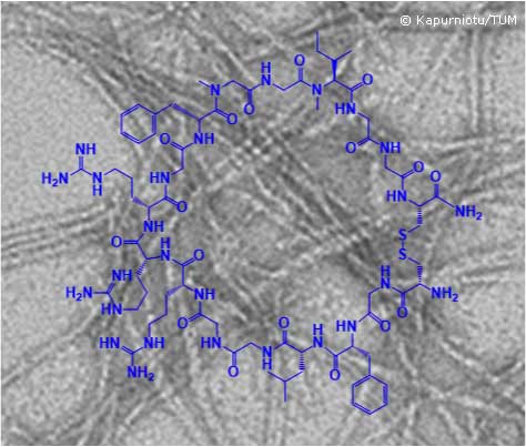 An einer Idee hat auch das Team um Aphrodite Kapurniotu, Professorin für Peptidbiochemie (TUM) am Wissenschaftszentrum Weihenstephan zusammen mit Forschern um Professor Martin Zacharias (TUM), Professor Gerhard Rammes (TUM Klinikum rechts der Isar) und Professor Jürgen Bernhagen (Institut für Schlaganfall und Demenzforschung (ISD) der Ludwig-Maximilians-Universität (LMU)) seit einiger Zeit geforscht und präsentiert nun makrozyklische Peptide (MCIPs), die für eine Amyloid-Hemmung infrage kommen. Über Ihre Ergebnisse berichten die Forscher in der Fachzeitschrift "Angewandte Chemie".