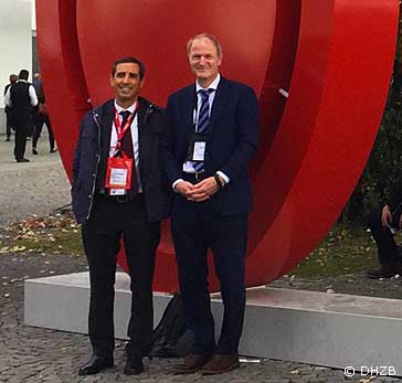 Bildunterschrift: Prof. Dr. Volkmar Falk (rechts) und Prof. Miguel Sousa-Uva aus Portugal, Vorsitzender der EACTS-Arbeitsgruppe für die Leitlinien