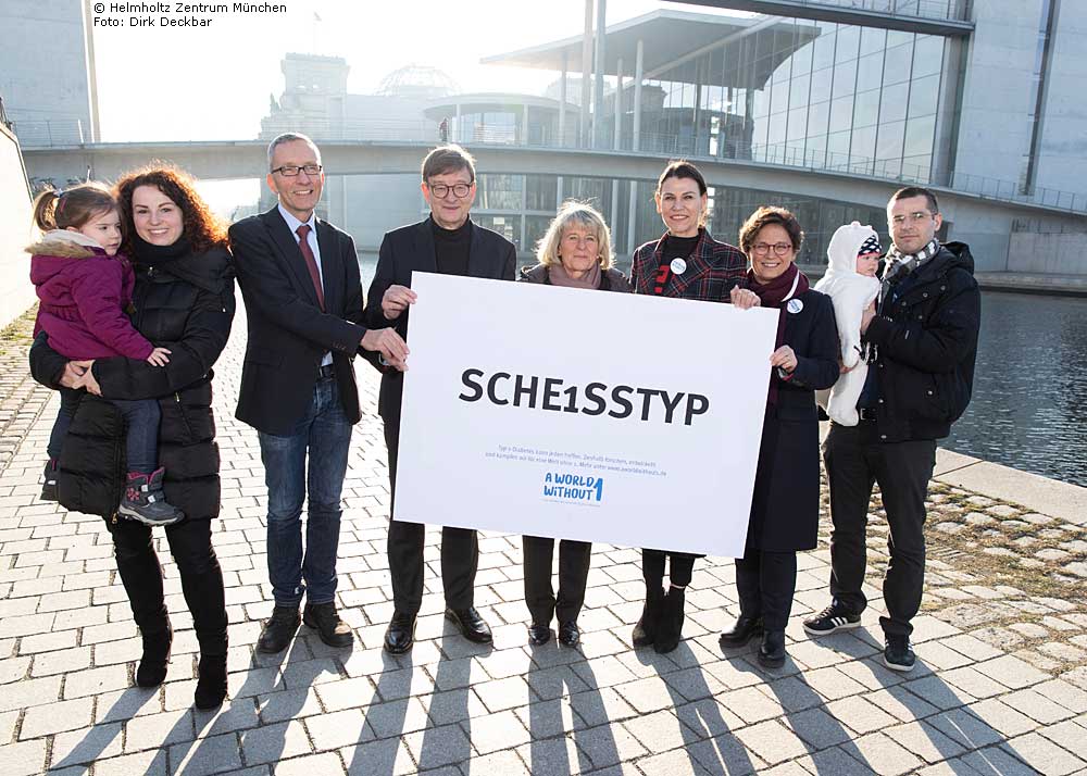 Diese Kampagne wird für Aufsehen sorgen, soviel ist sicher: "Sche1sstyp" prangt seit dem 22. Januar in großen Lettern auf 1500 Plakaten in München, Berlin, Hannover und Dresden sowie auf über 560 Infoscreens in ganz Deutschland. Verantwortlich dafür sind Wissenschaftler des Helmholtz Zentrums München, Partner im Deutschen Zentrum für Diabetesforschung (DZD). Dahinter steht allerdings ein ernstes Thema: Die crossmediale Kampagne 'A World Without 1' widmet sich der Früherkennung und Verhinderung von Typ-1-Diabetes, der häufigsten Stoffwechselerkrankung im Kindes- und Jugendalter. Bisher ist sie nicht heilbar, doch aktuelle Studien sollen die Krankheit früh erkennen und rechtzeitig den Ausbruch verhindern. Um möglichst viele Unterstützer zu gewinnen, gehen die Forscher nun bewusst an die breite Öffentlichkeit.Der heutige Auftakt der Studie wurde begleitet von einer Pressekonferenz in Berlin: Ein hochkarätig besetztes Podium um Prof. Dr. Anette-Gabriele Ziegler, Direktorin des Instituts für Diabetesforschung am Helmholtz Zentrum München, begrüßte die Journalisten im Haus der Bundespressekonferenz. Ziegler und ihrem Team war es nach jahrelanger Forschung zu den Ursachen von Typ-1-Diabetes gelungen, das entsprechende Risiko frühzeitig durch einen Gentest zu identifizieren. Darauf aufbauend laufen aktuell weitere klinische Studien, um den Ausbruch der Krankheit bei den oft sehr jungen Risikoträgern zu verhindern.[*]