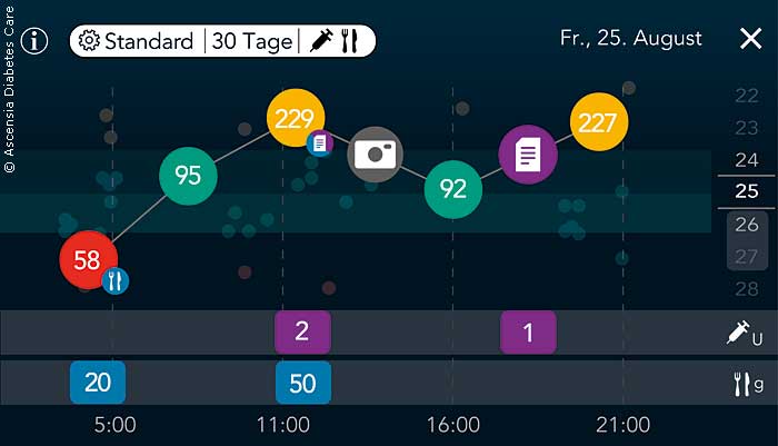 Bildunterschrift: Blutzuckerverlauf in der Contour Diabetes App.