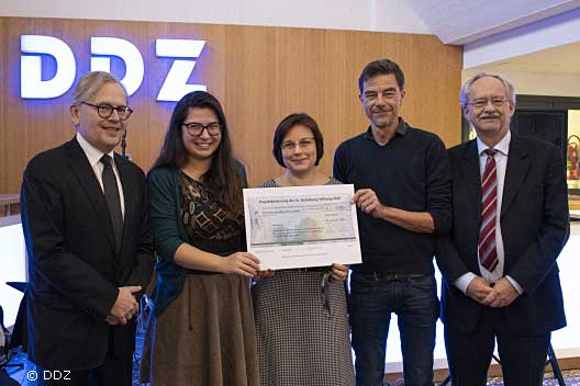 Neben dem mit 1.500 Euro dotierten Förderpreis wurde auch eine Projektförderung durch die Dr. Eickelberg-Stiftung ausgelobt. Diese erhielt ein interdisziplinäres Team um Oana-Patricia Zaharia aus dem Klinischen Studienzentrum (Institut für Klinische Diabetologie), Dr. Yuliya Kupriyanova aus der Arbeitsgruppe Metabolic Imaging (Institut für Klinische Diabetologie), und Dr. Klaus Strassburger aus dem Institut für Biometrie und Epidemiologie. Das Team hat die Verteilung der Fettgewebe-Kompartimente untersucht und herausgefunden, dass diese den Schweregrad der Stoffwechselstörung bei Prädiabetes und den Subtypen des Typ-2-Diabetes widerspiegeln. Dafür erhält die Forschergruppe eine Unterstützung in Höhe von 3.500 Euro.